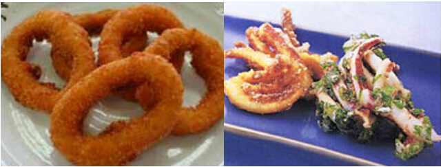 .油炸时面包粉中的水分与油进行交换,达到脆的效果,油炸鱿鱼到上色的状态为止。